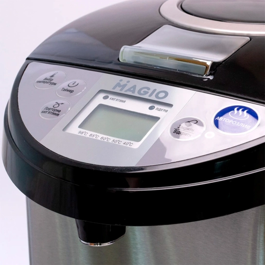 Термопот Magio MG-968 – это сочетание современных технологий и надежности для обеспечения вашего комфорта на кухне. Благодаря своему объему в 5 литров, этот термопот идеально подойдет для большой семьи или офиса, обеспечивая непрерывный доступ к горячей воде для приготовления чая, кофе или даже детского питания. Изготовленный из высококачественной нержавеющей стали, он не только привлекательно выглядит, но и гарантирует длительный срок службы.