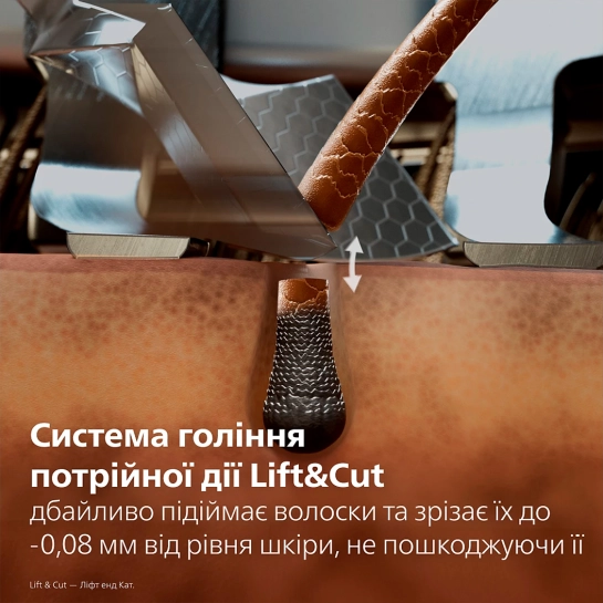 Наша запатентованная система бритья тройного действия Lift & Cut бережно поднимает волоски от самого корня, обеспечивая точный срез до -0,08 мм от уровня кожи, не повреждая ее. Для максимально гладкого результата, который сохраняется в течение всего дня.