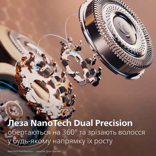 Разработано для захвата волосков, растущих в любом направлении: лезвия NanoTech Dual Precision вращаются на 360° и захватывают на 25% больше волосков за один проход. Совершая до 8 миллионов срезов в минуту, они обеспечивают точную эффективность даже для щетины длиной 1, 3 или 7 дней.