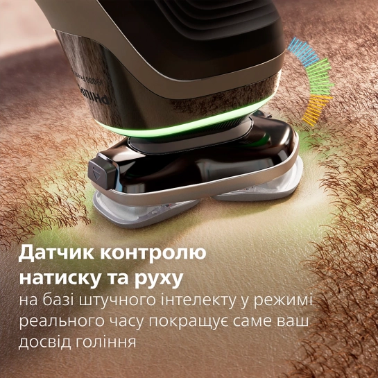 Наша система датчиков движения и давления имеет индикаторы, которые обеспечивают обратную связь в реальном времени, указывая на идеальное давление и движения во время бритья. Для максимального комфорта кожи и эффективности бритья.