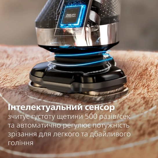 Интеллектуальный сенсор бритвы считывает плотность щетины 500 раз в секунду и автоматически регулирует мощность среза для лёгкого и бережного бритья, даже при густой бороде.