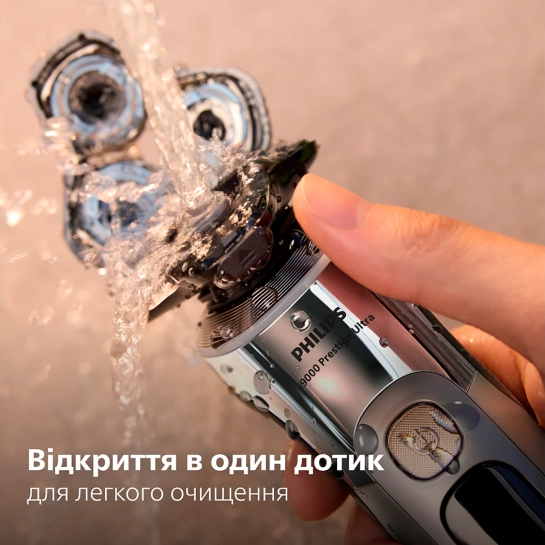 Очистите электробритву одним нажатием кнопки. Просто откройте головку бритвы и промойте её водой.