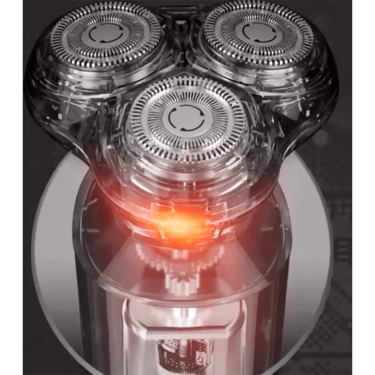 3 плавающими бреющими головками, которые могут повторять изгибы лица. Каждая головка состоит из двух кольцевых лезвий, что обеспечивает максимально быстрое и эффективное бритьё.