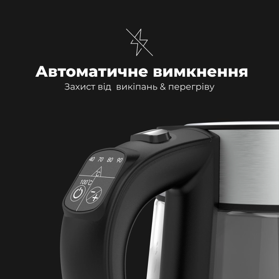 Интуитивно понятный пользовательский интерфейс размещен на ручке чайника, поэтому вы можете легко выбрать одну из предварительно установленных температур.