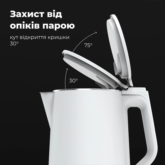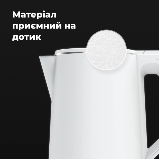 Внешняя часть чайника изготовлена из специального приятного на ощупь и нескользящего материала.