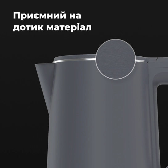 Внешняя часть чайника изготовлена из специального приятного на ощупь и нескользящего материала.