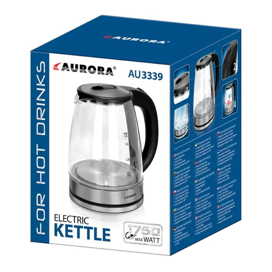 Экологически безопасный стеклянный чайник с приятной голубой подсветкой закипятит 1,8 л воды менее чем за 7 минут. Дисковый нагревательный элемент из нержавеющей стали прост в уходе и не подвержен коррозии.