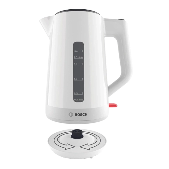 - Большая гибкость и удобное положение ручки. Поскольку шнур подключен к базе, чайник можно носить