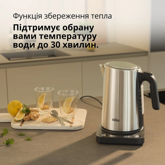 Функция поддержания температуры сохраняет выбранную температуру воды до 30 минут, что добавляет удобства для тех, кто хочет наслаждаться напитками в собственном темпе. Это делает Braun WK 5205 BK действительно уникальным выбором среди аналогов.