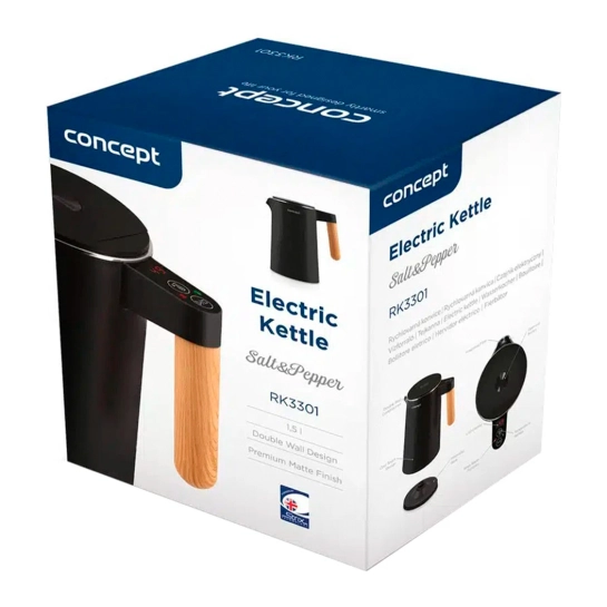 Электрический чайник Salt & Pepper Concept RK3301 найдет место в каждом доме. Матовый корпус подчеркивает привлекательный дизайн на минималистической подставке, дополненный элегантной деревянной ручкой. Благодаря объему 1,5л вы сможете приготовить к шести чашкам любимого горячего напитка.