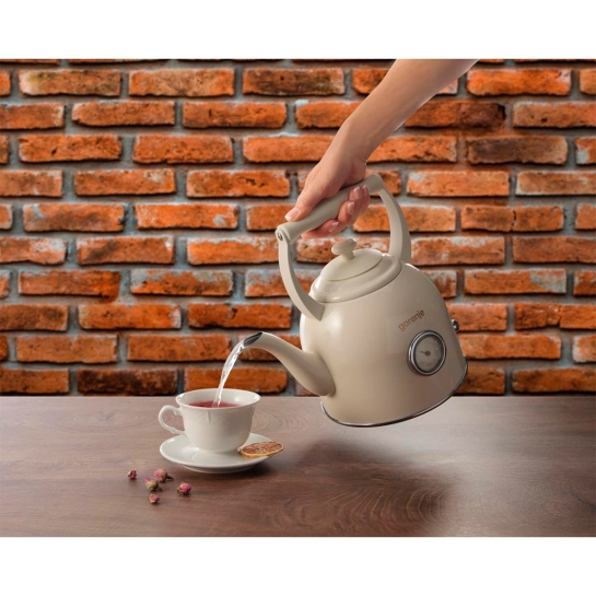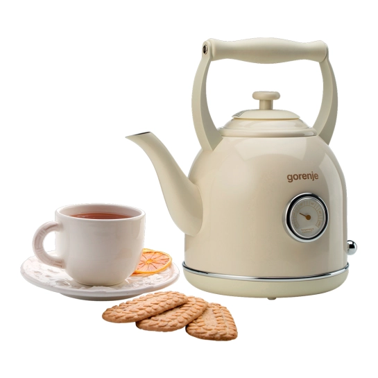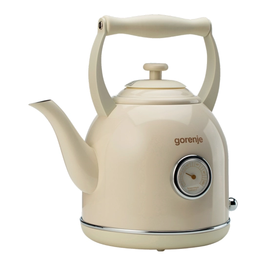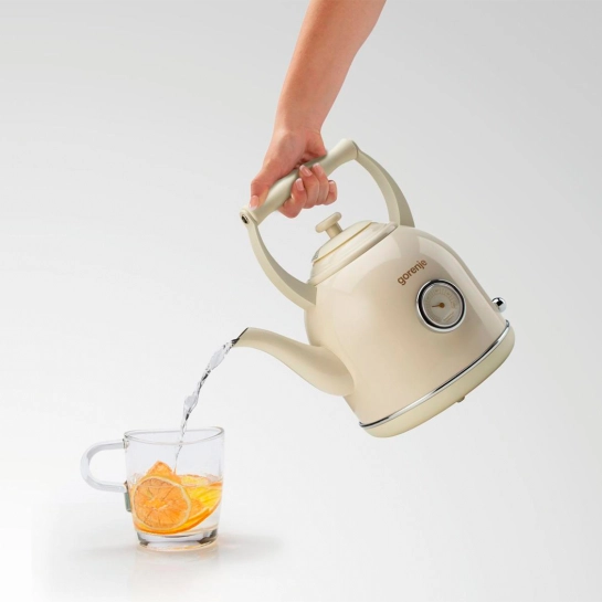 Аналоговый термометр в винтажном дизайне на чайнике облегчает приготовление любимого снадобья. Когда вода нагреется до нужной температуры, выключите прибор и налейте воду на чай или кофе.