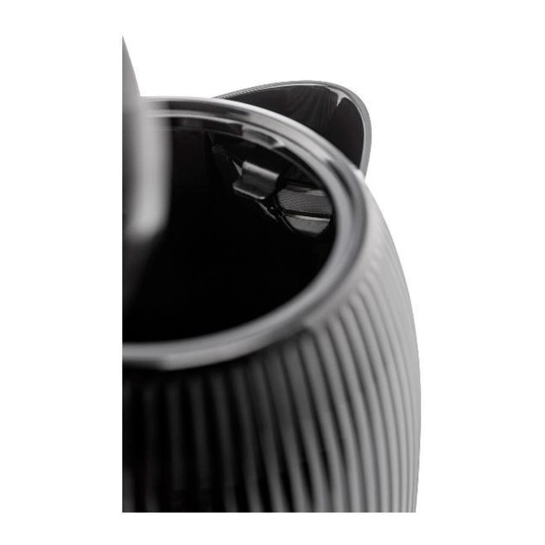 Скрытый нагревательный элемент из нержавеющей стали обеспечивает равномерное нагревание и быстрое кипячение, снижая при этом образование накипи. Чёрный матовый корпус выполнен из высококачественных материалов, придающих устройству стильный вид и защищающих его от царапин и отпечатков. Широкая база позволяет вращать чайник на 360°, что делает его удобным для использования как правой, так и левой рукой.