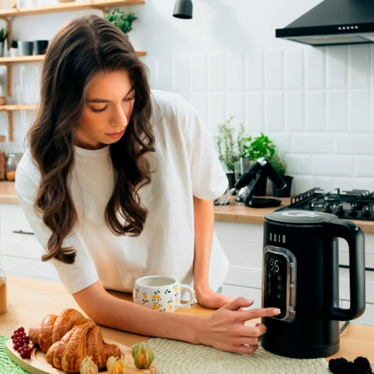 Интеллектуальная сенсорная панель управления с экраном отображает температуру, индикатор нагрева, функцию поддержания тепла, а также позволяет выбрать нужный режим от точного подогрева до быстрого кипячения. После снятия чайника с подставки он запоминает установленные настройки, что делает пользование еще более удобным.