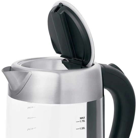 Основной цвет чайника — нержавеющая сталь, что делает его универсальным элементом интерьера, сочетающимся с любым стилем кухни. Этот материал не только придает устройству современный вид, но и гарантирует его долговечность и устойчивость к внешним воздействиям.
