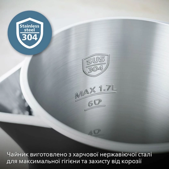 Наслаждайтесь безопасными и чистыми напитками. Чайник изготовлен из пищевой нержавеющей стали для максимальной гигиены и защиты от коррозии.