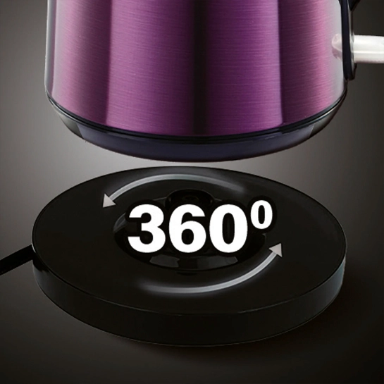 Подставка для размещения чайника Satelit SK1821P позволяет не подводить провод к резервуару с водой. Регулируемый по длине кабель можно уменьшить, чтобы от подставки к розетке не тянулись мешающие провода. Вращение резервуара на 360° вокруг собственной оси позволит повернуть чайник так, чтобы и правее, и левее было удобно взять его в руки с любой стороны.