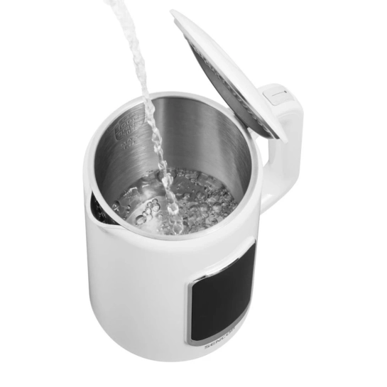 Чёрный матовый корпус придаёт чайнику строгий и элегантный вид, подчёркивая его технологичность. Белая LED-подсветка дисплея создаёт контрастный визуальный акцент, позволяя легко считывать информацию в любое время суток. Sencor SWK0950WH гармонично сочетает эстетичность, функциональность и надёжность — всё, что требуется современному пользователю.