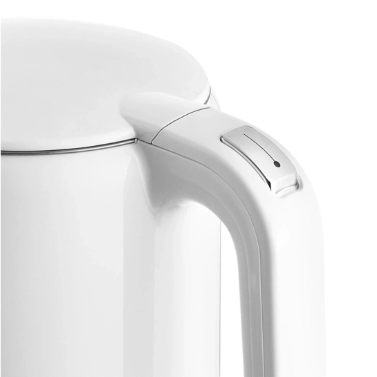 Корпус чайника выполнен по технологии Double Wall: внутренняя колба изготовлена из нержавеющей стали, а внешний слой — из термостойкого пластика. Такая конструкция удерживает тепло внутри дольше и минимизирует нагрев поверхности, предотвращая случайные ожоги — особенно полезно в семьях с детьми.