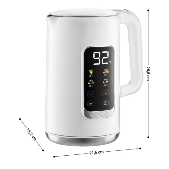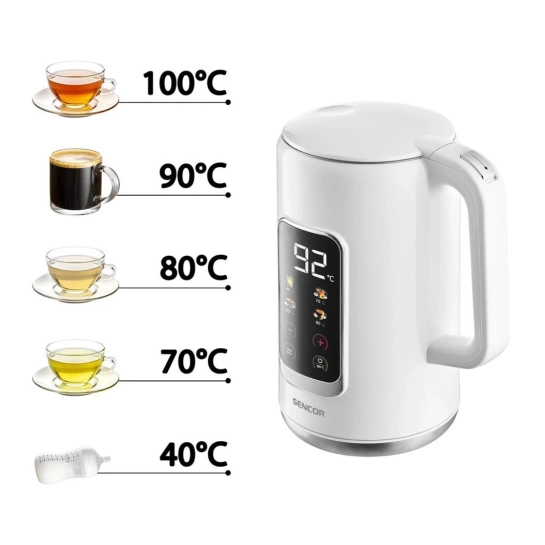 Электрочайник Sencor SWK0950WH — это современный и технологичный бытовой прибор, созданный для тех, кто ценит точность, удобство и стильный минималистичный дизайн. Он предлагает расширенные возможности контроля температуры и обеспечивает комфортное использование в любых условиях — от домашней кухни до офисного пространства.