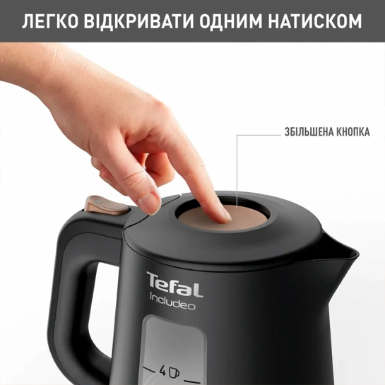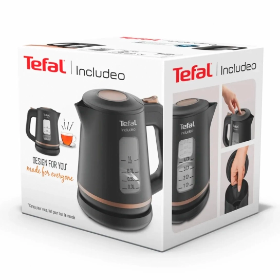 Электрочайник Includeo от Tefal создан для того, чтобы делать вашу жизнь вкуснее! Tefal продумал все, чтобы облегчить вашу повседневную жизнь. Благодаря большой удобной кнопке открытия/закрытия на крышке и большой эргономичной ручке чайник удобно наполнять.