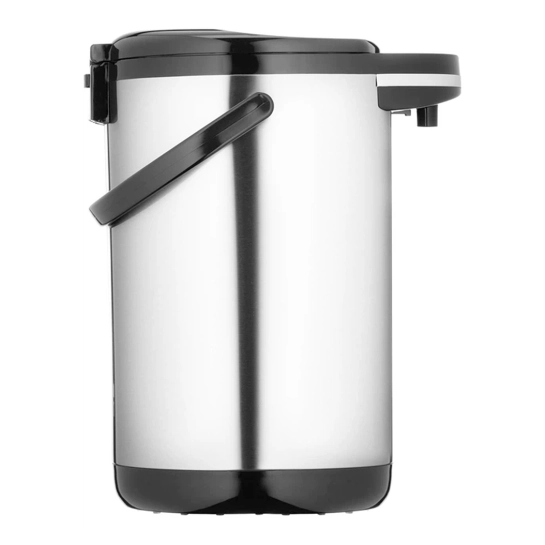 Для удобной переноски в конструкции предусмотрена прочная ручка. Прорезиненные ножки обеспечивают устойчивость термопота на любой поверхности и предотвращают скольжение, даже если стол слегка влажный. Сочетание высокой мощности 750 Вт и качественного нагревательного элемента скрытого типа обеспечивает равномерное и быстрое нагревание воды.