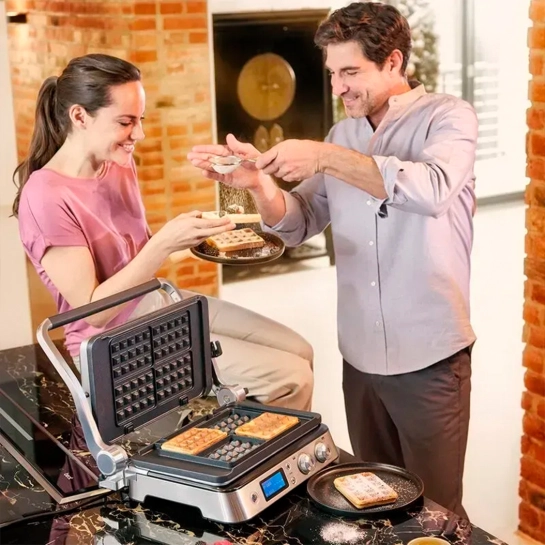 Необычайная точность и отличная универсальность у вас под рукой. Два независимых электронных регулятора позволяют точно устанавливать температуру каждой пластины по отдельности, чтобы вы могли одновременно готовить два блюда на двух температурах одновременно.