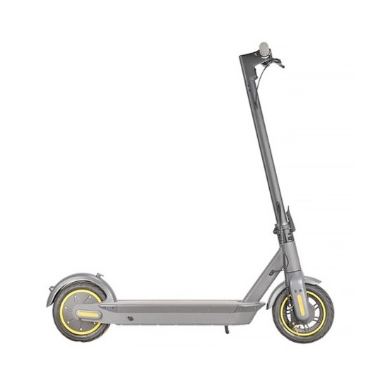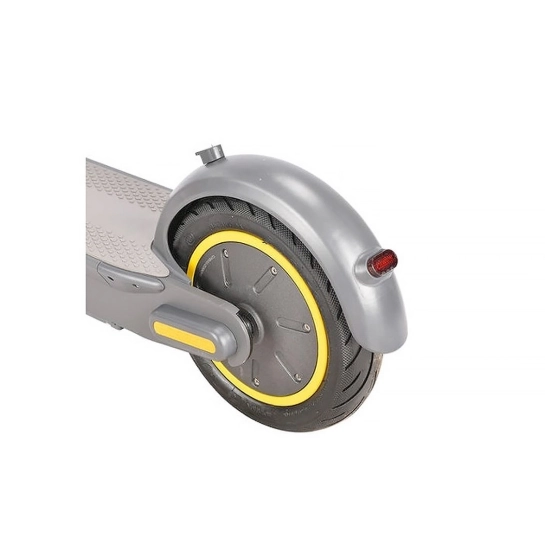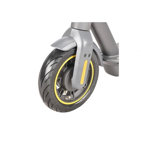 Електросамокат використовує 10-дюймові шини з високою еластичністю і зносостійкістю. Також він оснащений високочутливим дисковим гальмом. Подвійна амортизація забезпечує комфортне пересування не тільки на рівних дорогах — вона допомагає насолоджуватися додатковими кілометрами на всіх типах місцевості.