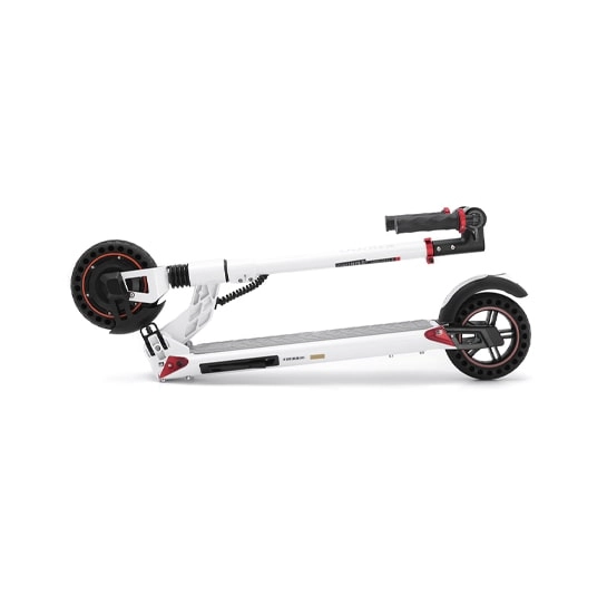 В сложенном виде электросамокат компактный, общий вес составляет всего 12,5 кг, при таком небольшом весе он способен выдерживать вес драйвера до 120 кг.