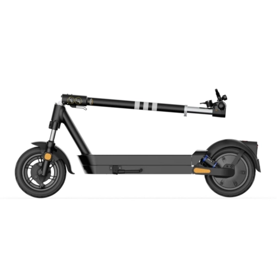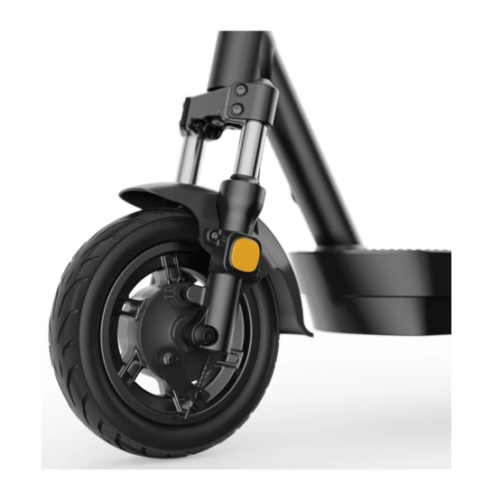 Для комфорта во время поездок самокат оборудован передним гидравлическим амортизатором и регулируемым задним амортизатором, эффективно поглощающим неровности дороги. Пневматические бескамерные 10-дюймовые шины способствуют плавности хода и повышают устойчивость.
