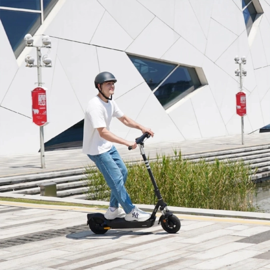 Для комфорта во время поездок самокат оборудован передним гидравлическим амортизатором и регулируемым задним амортизатором, эффективно поглощающим неровности дороги. Пневматические бескамерные 10-дюймовые шины способствуют плавности хода и повышают устойчивость.