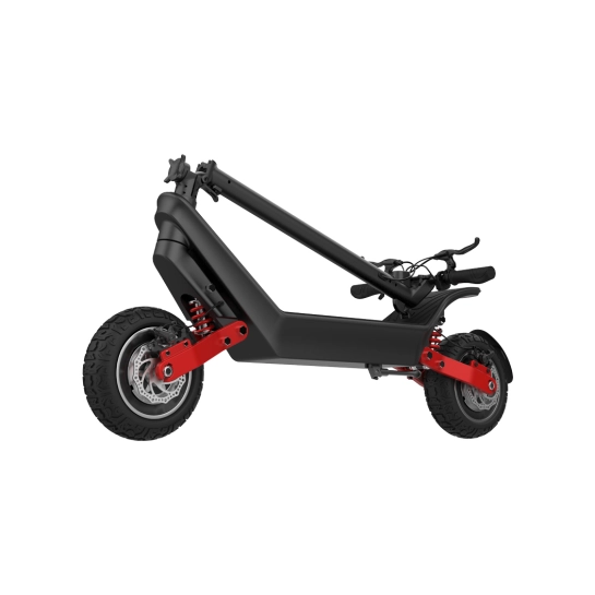 Двойная мощная пружинная подвеска поглощает любые неровности, которые встретятся вам на дороге. Этот двойной амортизатор также установлен на каждом колесе. На практике все пользователи отмечают очень плавный, аккуратный ход электросамоката.