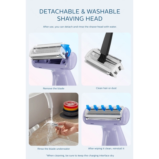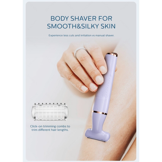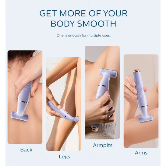 - Водонепроницаемый дизайн: уровень защиты IPX7 позволяет использовать эпилятор во влажных условиях и легко очищать его под водой.
