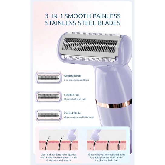 - Безболезненное удаление волос: специально разработанные насадки обеспечивают комфортную процедуру без раздражений.
