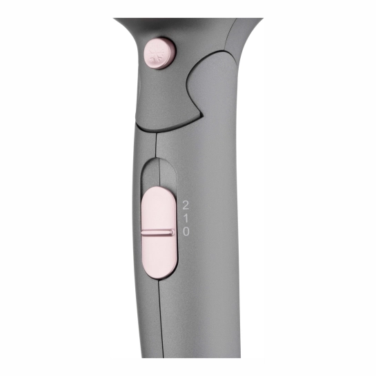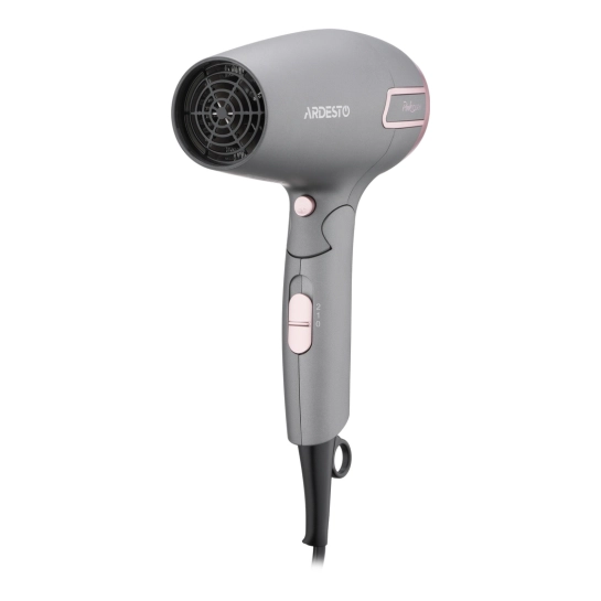 Особенностью Ardesto Pink Touch является его складная ручка, которая делает фен удобным для транспортировки и хранения. Серый цвет с розовыми акцентами придает прибору современный вид. Кроме того, фен оснащен функцией "Cool Shot", обеспечивающей подачу холодного воздуха для закрепления укладки.