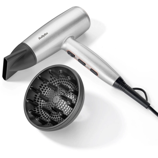 В комплект входят две функциональные насадки. Узкий концентратор формирует направленный поток воздуха для точной укладки и выпрямления прядей, а большой диффузор помогает создать объём у корней и подчеркнуть естественную текстуру локонов. Такое оснащение делает фен универсальным инструментом для разнообразных образов.