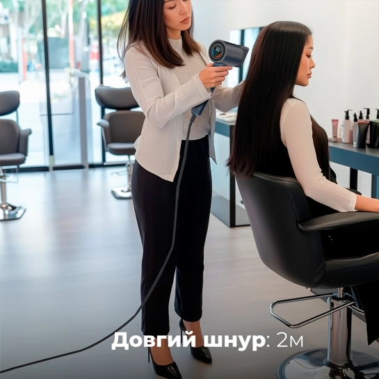 Создавайте укладки без ограничений с помощью 2-метрового шнура HD3, что обеспечивает максимальное удобство и гибкость. Будь то дома или в салоне, HD3 позволяет свободно двигаться для легкой и безупречной укладки.