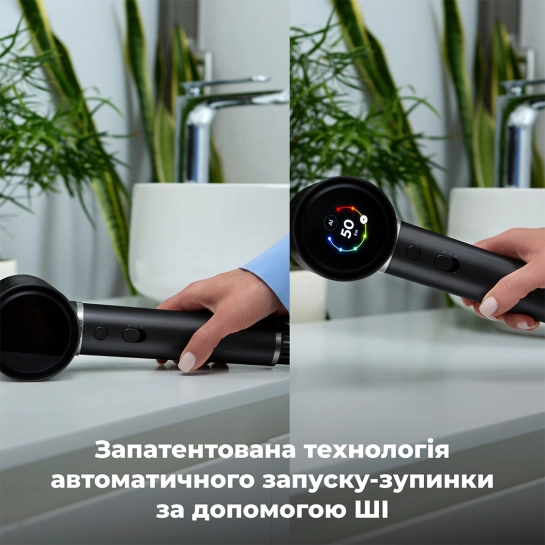 Фен оснащен встроенной технологией голосового управления, позволяющей легко изменять режимы с помощью простых команд. Вы можете выбрать автоматическую регулировку температуры и мощности благодаря искусственному интеллекту или вручную переключаться между теплым, горячим и холодным режимами для максимально комфортной укладки.