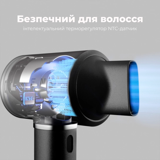 Встроенный датчик NTC постоянно отслеживает температуру и автоматически регулирует нагрев в реальном времени. Такой разумный контроль предотвращает перегрев, защищая волосы от термических повреждений и обеспечивая безопасную и эффективную сушку.