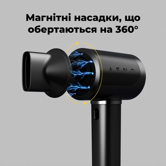 Фен AENO HD5 комплектуется пятью сменными магнитными насадками, легко крепящимися к устройству.