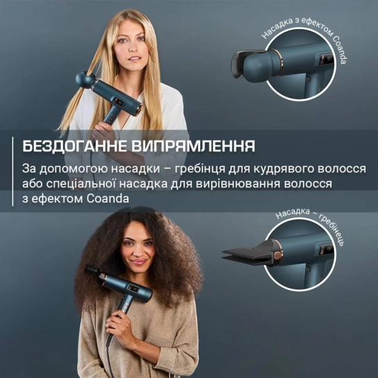 Благодаря специальному воздушному потоку технология Coanda укрощает «рыхление» и делает волосы гладкими и ухоженными.