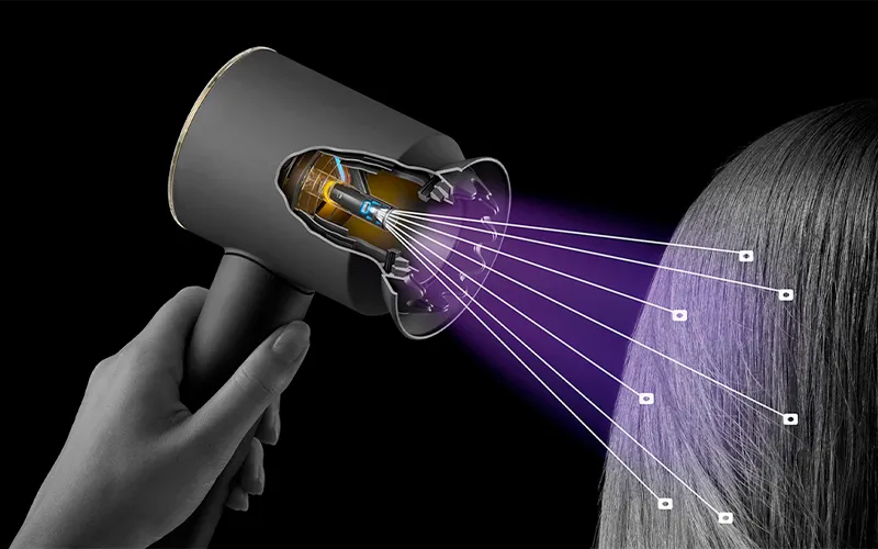 Сеть датчиков внутри фена Dyson Supersonic Nural автоматически активирует новые функции. Для оптимизации укладки и ухода за кожей головы.