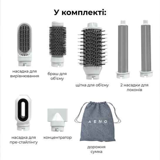 Этот фен создан для всех типов волос. Имеете короткую, среднюю или длинную длину волос или предпочитаете гладкие, объемные или вьющиеся прически – AENO Hair Styler & Dryer HS1 обеспечивает профессиональные результаты для любой текстуры и длины волос. Это настоящий универсальный инструмент для создания любого образа, от простой сушки до сложных или профессиональных укладок.