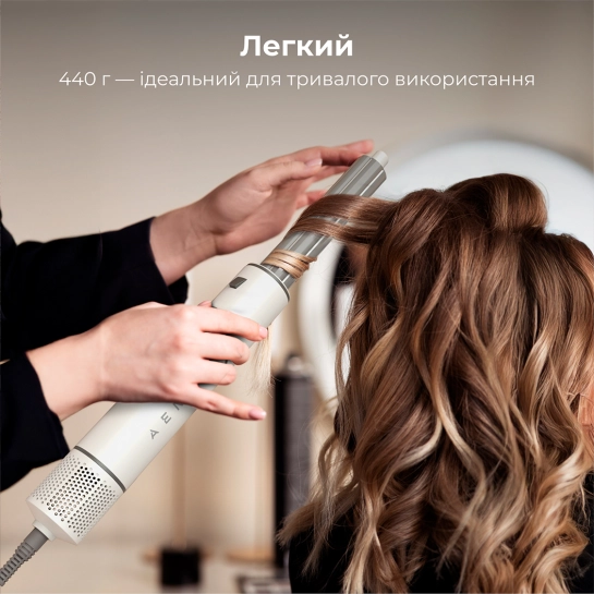 Вес фена всего 440 г, что делает его очень легким и удобным в использовании. Благодаря такому весу руки не устают даже при длительной сушке и укладке. Компактный и легкий дизайн идеально подходит для ежедневного использования как дома, так и в салоне, а также для ищущих удобный и портативный стайлинг-инструмент.