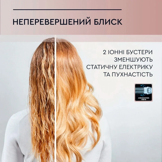2 ионных бустера уменьшают статическое электричество и пушистость.