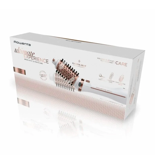 Прорыв в стайлинге, которого вы так долго ждали: фен-щетка Rowenta The Ultimate Care переосмысливает опыт укладки волос благодаря бережному уходу и потрясающим вариантам укладки. Откройте для себя идеальную укладку от подсушивания волос до создания финальных штрихов: технология бережного нагрева обеспечивает полную защиту и здоровье ваших волос, кварцевое керамическое покрытие сочетается с натуральными щетинками и ионным эффектом для тройного усиления блеска, а настройка объема придает невероятное прическе.