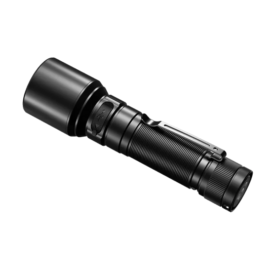 Применённый диод – Luminus SST70, срок эксплуатации которого достигает 50000 часов. Управляется модель через боковую кнопку. При зарядке через USB Type-C три часа вам необходимо, чтобы полностью зарядить аккумулятор. Комфортная клипса на корпусе фонаря служит для того, чтобы фиксировать его на кармане, например, или же прикрепить к поясу. Изготовленный целиком из металла корпус Fenix C7 оптимален для выполнения работ в сложных условиях – эффективная защита от повреждений.