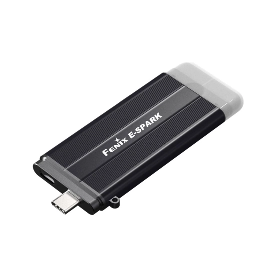 Модель Fenix E-Spark является аккумуляторным брелком для аварийных ситуаций. Fenix E-SPARK — перезаряжаемый фонарь на брелке с функцией Power Bank. За счёт встроенного аккумулятора емкостью 800 мАч он обеспечивает световой поток 100 люменов, расстояние луча составляет 30 метров.