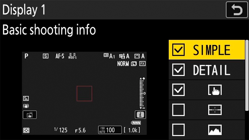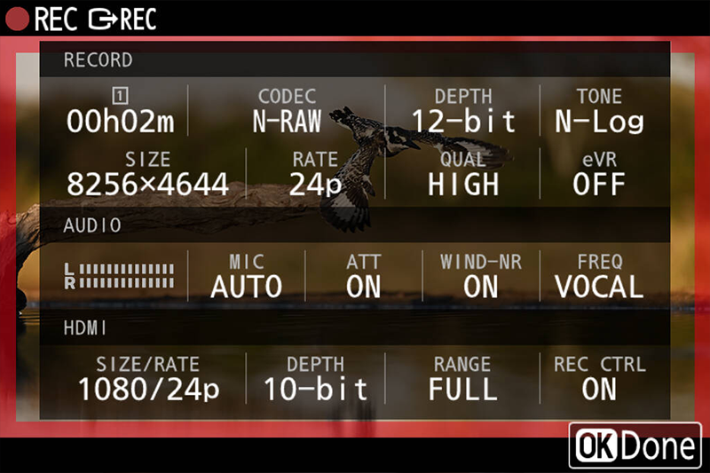 Пользовательское меню «i» позволяет одновременно отображать основные параметры видео на мониторе. Можно также подтвердить разрешение и частоту кадров на верхнем экране фотокамеры.
