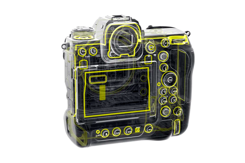 Удары. Падения. Сюрпризы. Каркас фотокамеры Z 9 изготовлен из магниевого сплава, что делает его прочным и легким. Длительные съемки? Фотокамера имеет отличные характеристики экранирования электромагнитного излучения и теплового излучения.