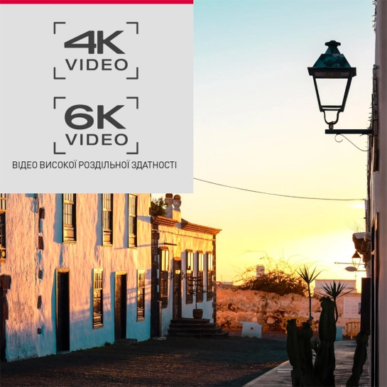 Эта камера также идеально подходит для создания видео. Записывайте невероятно красивые пейзажи и незабываемые моменты, которые вы хотите сохранить в высоком качестве в формате 4K/6K.